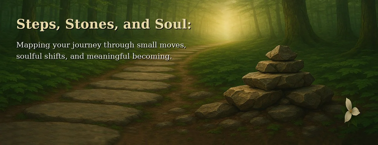 .Welcome to Steps, Stones, and Soul, a sanctuary where every movement is a purposeful step and every pause holds meaning. This is a space for the reflective traveler: for those navigating transitions, seeking depth, and embracing evolution through small, intentional moves. Here, I explore the layered terrain of psychology, spirituality, wisdom, aging, intuition, and purpose. I use metaphors, stories, and images as trail markers to light the way forward, along with practical suggestions for cultivating progress.